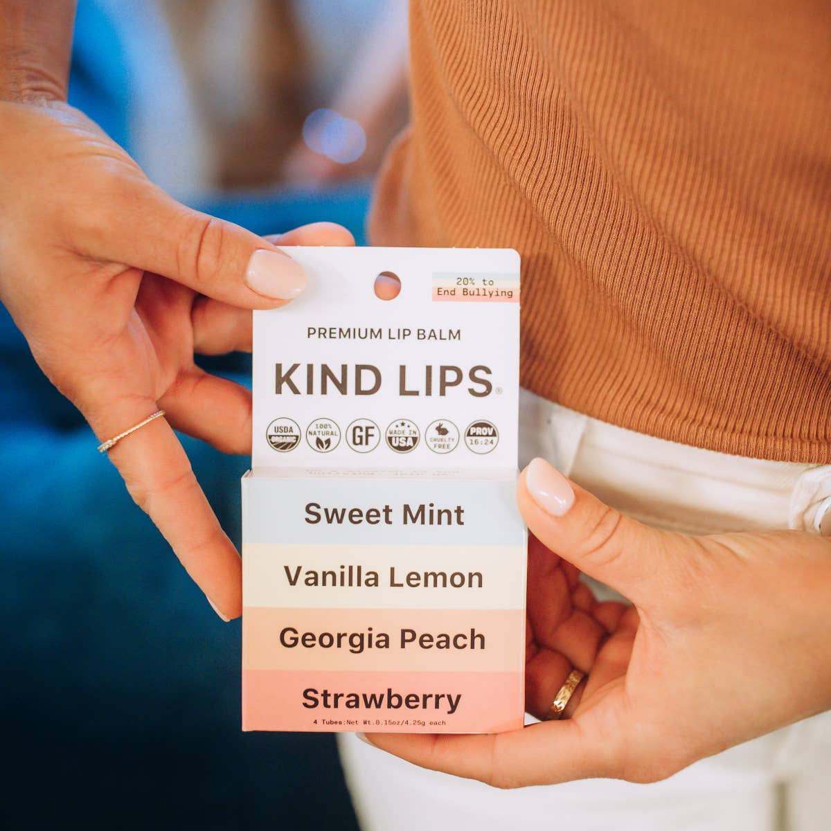 Kind Lips has a mission to end bullying and message to be kind. 20% of our profits go to anti-bullying organizations. Our tubes of lip balm are a reminder to be kind each and everyday!